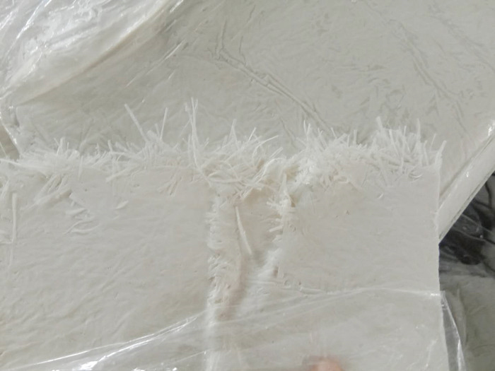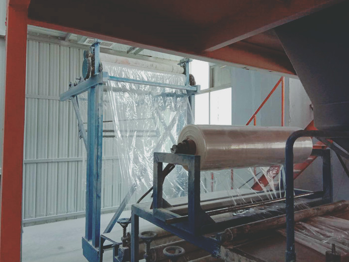 首先,我們需要把不飽和樹脂和玻璃纖維等原材料混合形成片材。其樹脂的作用就好比是混凝土,纖維紗的作用就好比是鋼筋,兩者搭配才能使其更加堅固。形成片材的同時,成形的片材需要用塑料膜包住,起到保護作用。